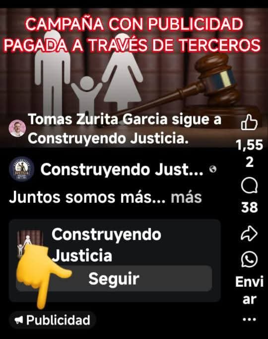 Tomás Zurita García, candidato a magistrado de circuito mixto, fue promovido en redes sociales con pago de publicidad a la empresa Meta, a través de la página “Construyendo Justicia”. Dicha página fue creada hace apenas 6 meses y en su perfil refiere que tiene anuncios en circulación, por lo que es posible que no sea el único candidato que se promovió utilizando a un tercero, algo que también es violatorio de la reglamentación electoral.