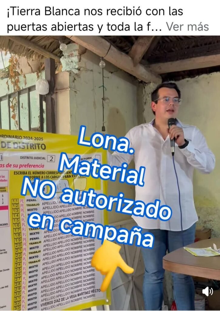Otro aspirante que no fue capaz de respetar la reglamentación electoral es Héctor Viveros Díaz de la Vega Martínez, candidato a juez federal. El abogado utilizó una boleta impresa en lona, material no biodegradable y prohibido por el INE y OPLE, hecho que es constitutivo de una irregularidad en el desarrollo de su campaña; esta situación se puede observar en sus publicaciones de Facebook de fechas 20 y 26 de abril.